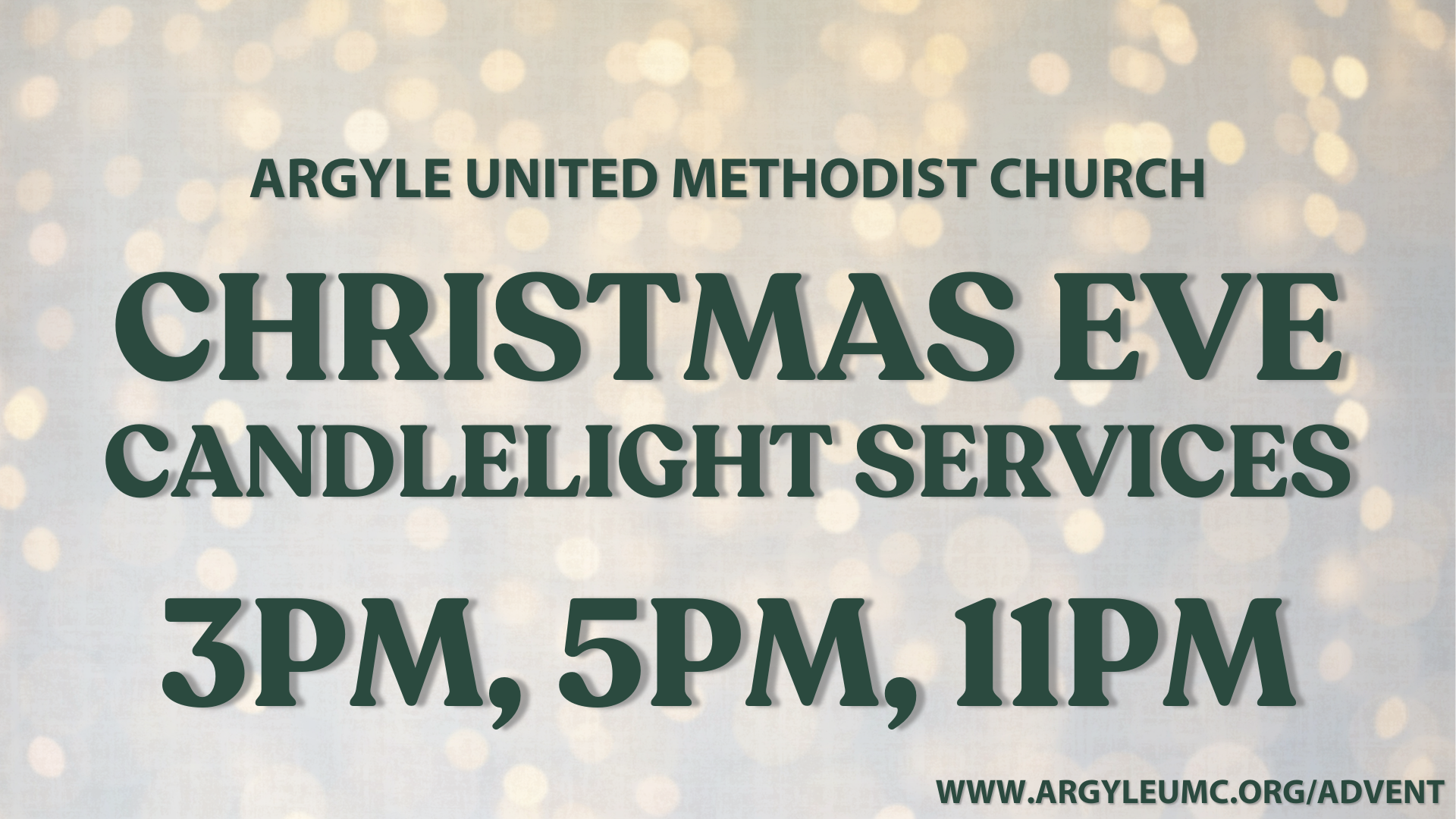 📅 December 24th 👥 Everyone 📍 Argyle United Methodist Church Christmas Eve Services – 3:00 PM Family, 5:00 PM Blended, 11:00 PM Christmas Eve