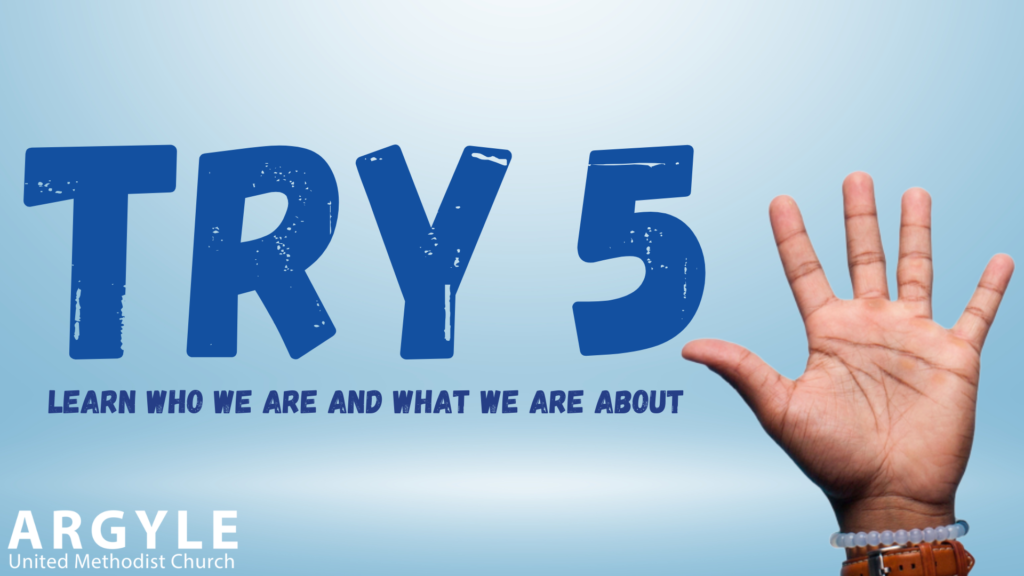 We’ve found that one service is rarely enough to experience any church. Regardless of how you felt about Argyle UMC, we always encourage visitors to “Try 5” at any church – go to at least five services or small groups to really get a feel for it.